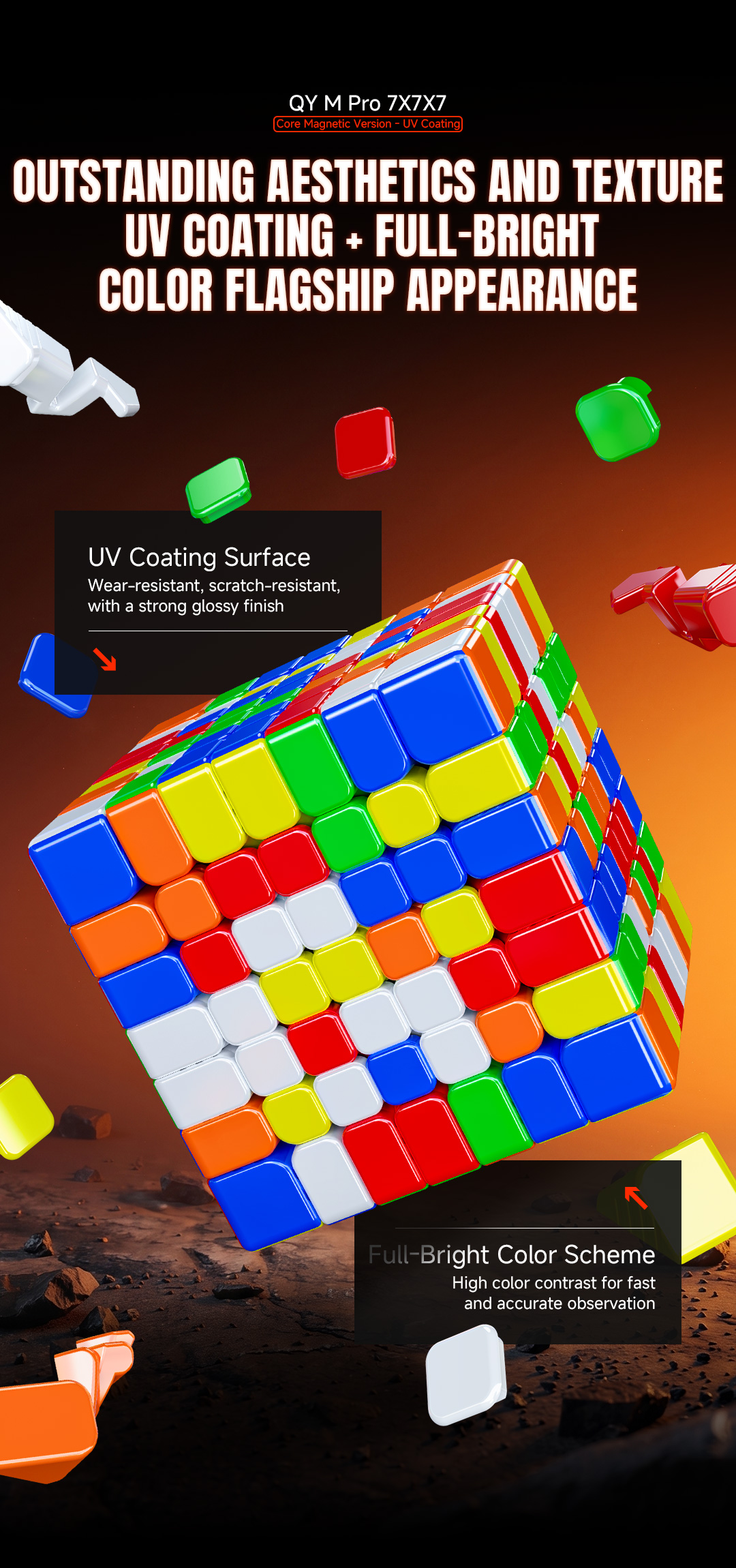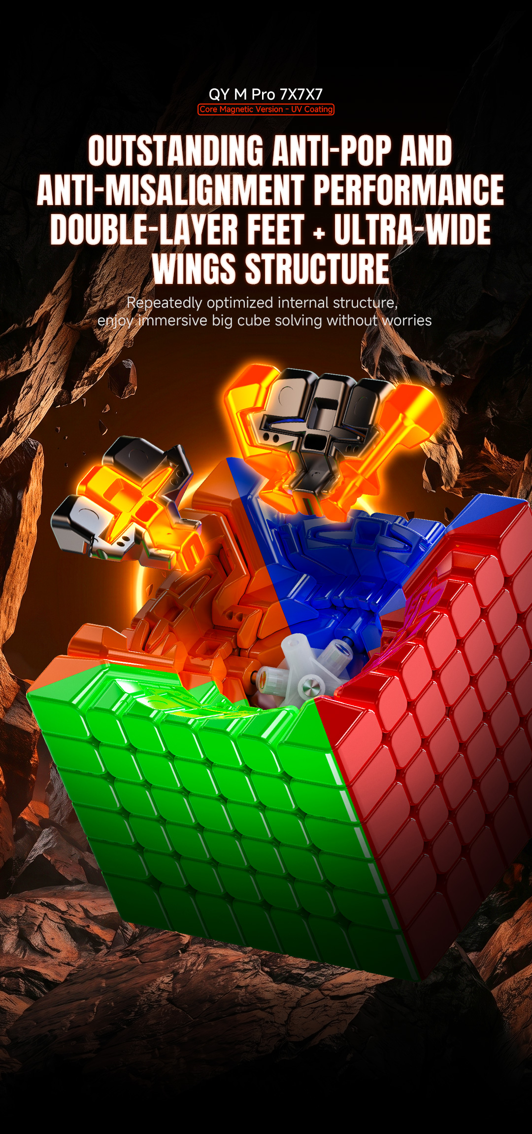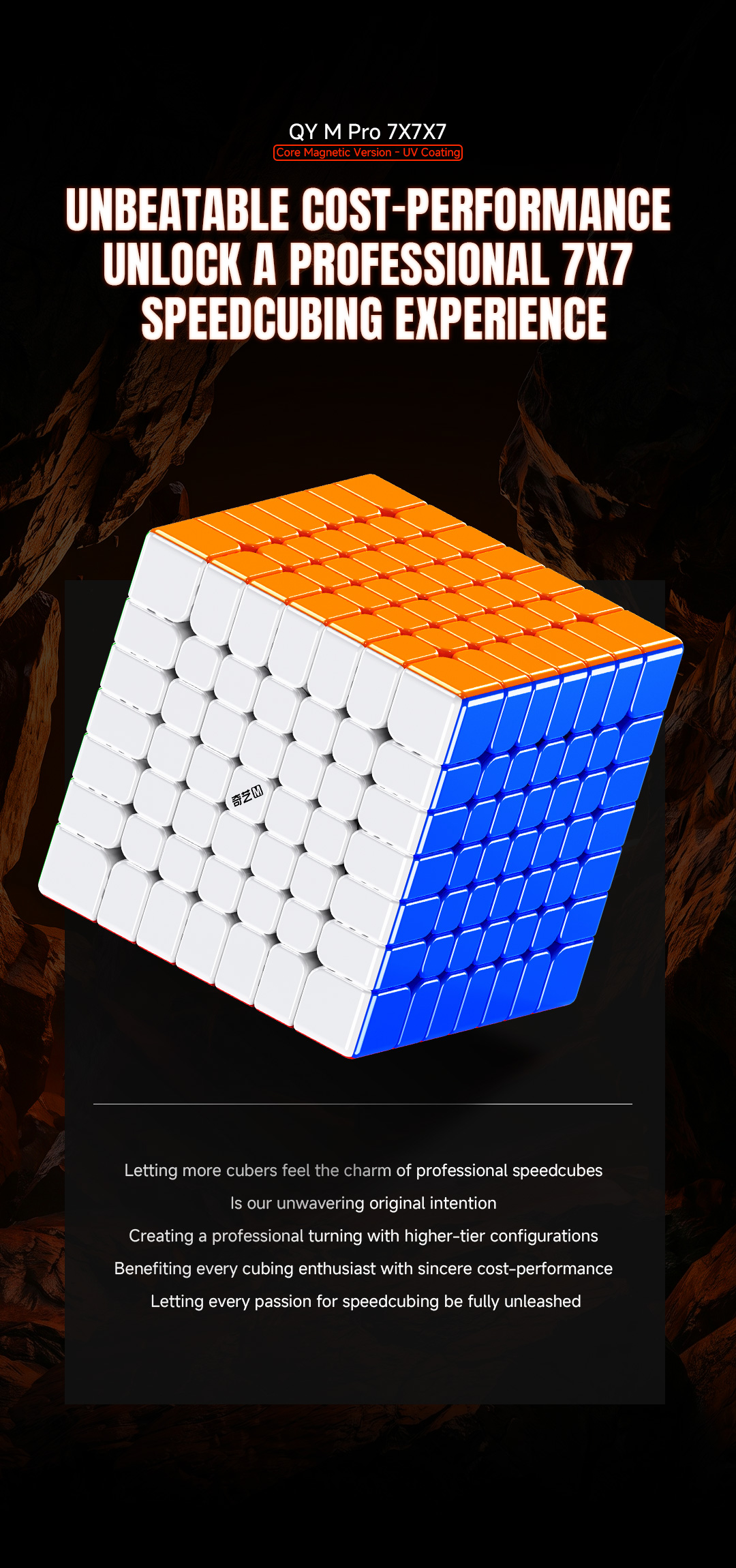 QiYi M Pro 7x7 Core Magnetic UV Versionは、圧倒的なコストパフォーマンスとプロフェッショナルなスピードキュービング体験を提供する、高性能な7x7多層キューブです。