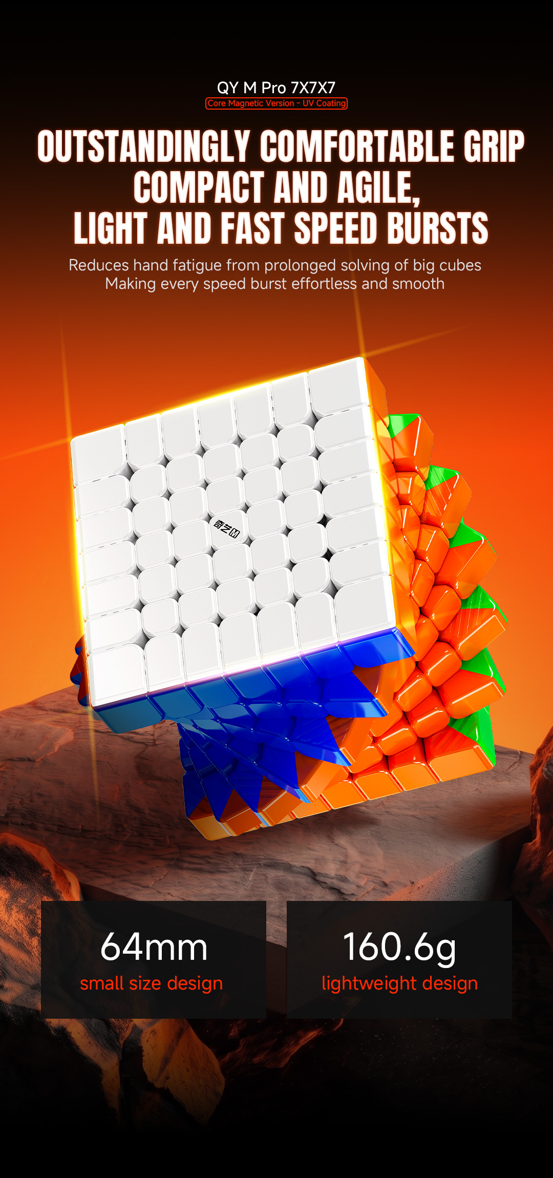 サイズ: 64mmの小型設計。多層キューブでありながら手にしっかりと収まり、操作性を向上させます。